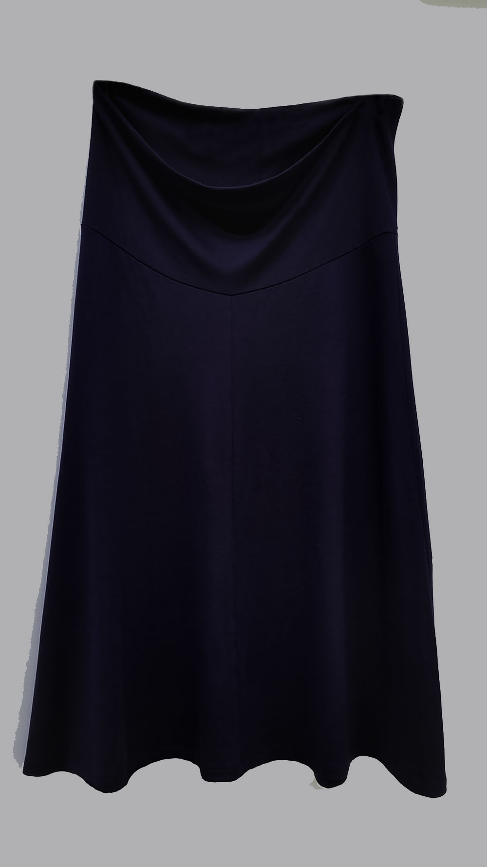 Designed and made for your comfort, and for a slimming appearance. Perfecting the Mamala fit is always our priority, as this soft and cozy mid-length knit skirt is versatile and drapes beautifully. Wear the wide waistband over your tummy, or shape it downward under your tummy! Our Mamala signature A-line skirt drapes just below your knees. Allow us to say that, the quality is unsurpassed!
